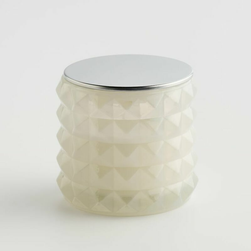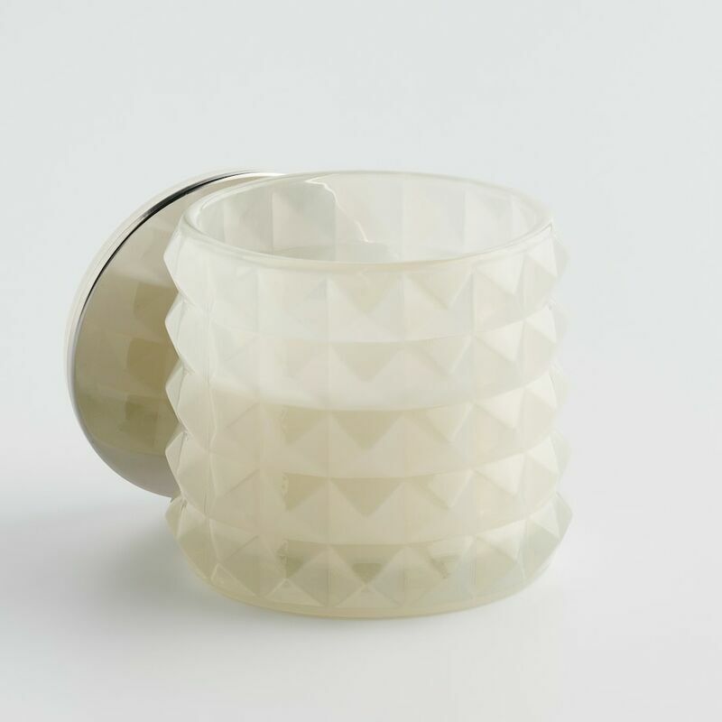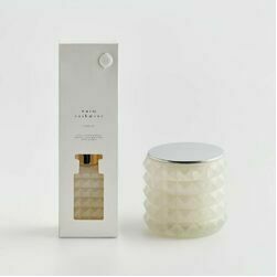 Izmēri: 0.0 cm x 0.0 cm H: 8.5 cm dia: 10.0cm V: 0.0 ml Sastāvs: Stikls, Sintētiskā Gumija, Sojas Vasks, Metāls Ar Pārklājumu, Parafīns, Aromāts