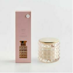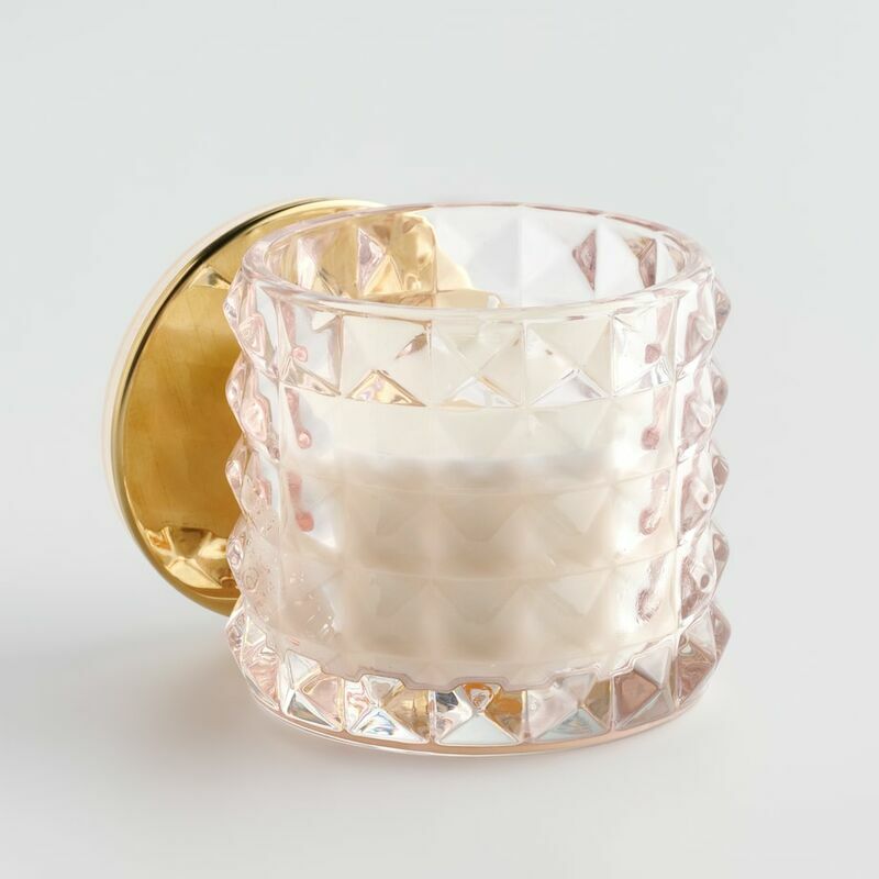 Izmērs: 0.0 cm x 0.0 cm H: 8.5 cm dia: 10.0cm V: 0.0 ml Materiāls: Stikls, Sintētiskā Gumija, Sojas Vasks, Metāls Ar Pārklājumu, Parafīns, Aromāts