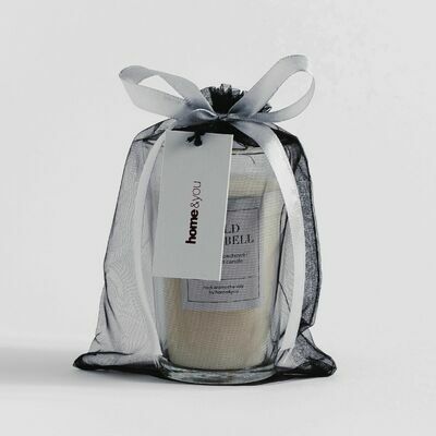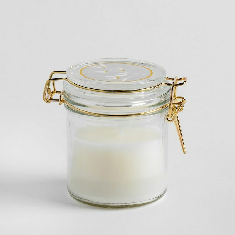 Izmērs: dia:8 cm H:10 cm Materiāls: stikls;metāls;vasks;aromāts