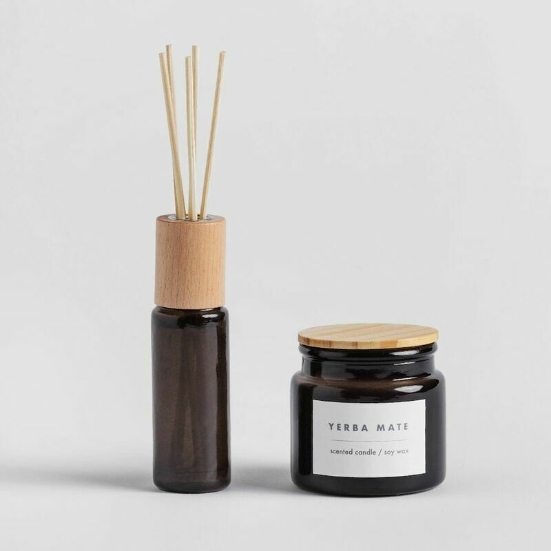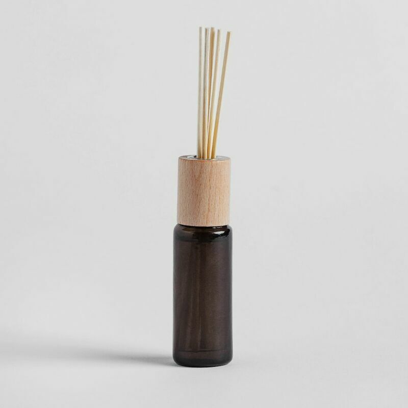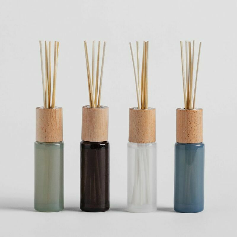 Izmērs: 3.5x4 H: 17.5 cm, V: 30 ml Satāvs: stikls, aromāts, koks, niedres