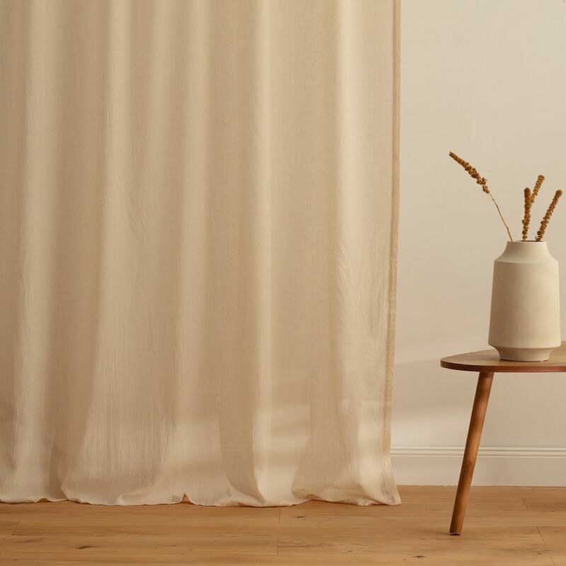 Cubi aizkars ir ne tikai funkcionāls elements, bet arī elegants jūsu interjera papildinājums. Poliestera un kokvilnas maisījums nodrošina izturību, vienlaikus saglabājot auduma maigumu un smalkumu. Bēšā krāsa ir universāla un viegli sader ar citiem interjera dizaina elementiem, piešķirot tai smalku šarmu un siltumu. 135 cm x 250 cm aizkars lieliski iederēsies lielākajā daļā standarta logu, nodrošinot optimālu gaismas pārklājumu un privātumu. Pateicoties īpašajai auduma struktūrai, aizkaru ir viegli uzturēt tīru, kas atvieglo tā kopšanu. Neatkarīgi no tā, vai vēlaties radīt mājīgu atmosfēru viesistabā vai nodrošināt privātumu guļamistabā, aizkars būs lieliska izvēle, kas papildinās un dekorēs jūsu interjeru.