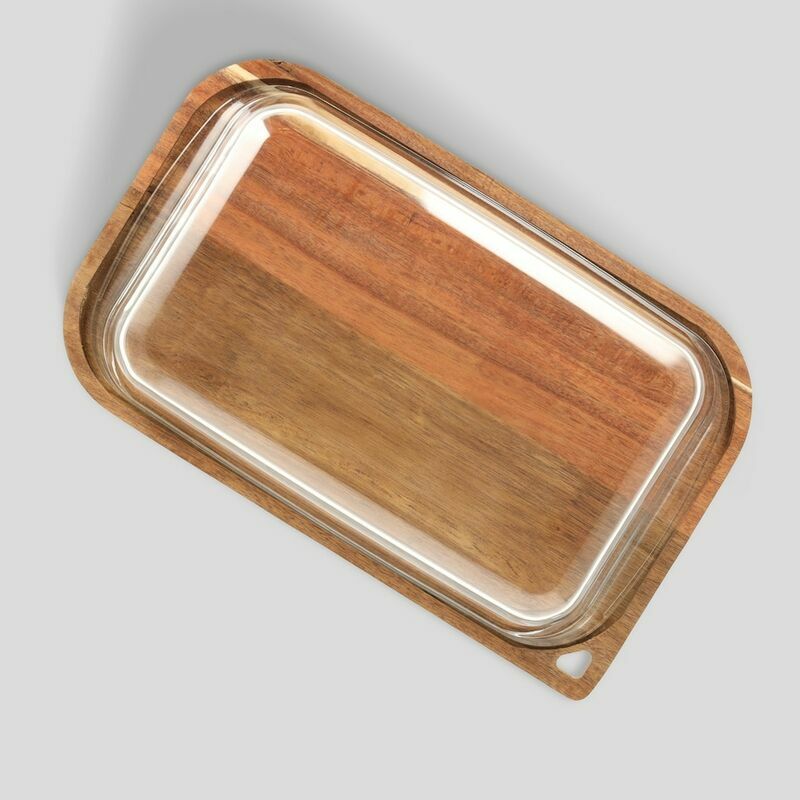 Izmēri: 31x19 H: 5.5 cm Materiāls: Stikls, koks